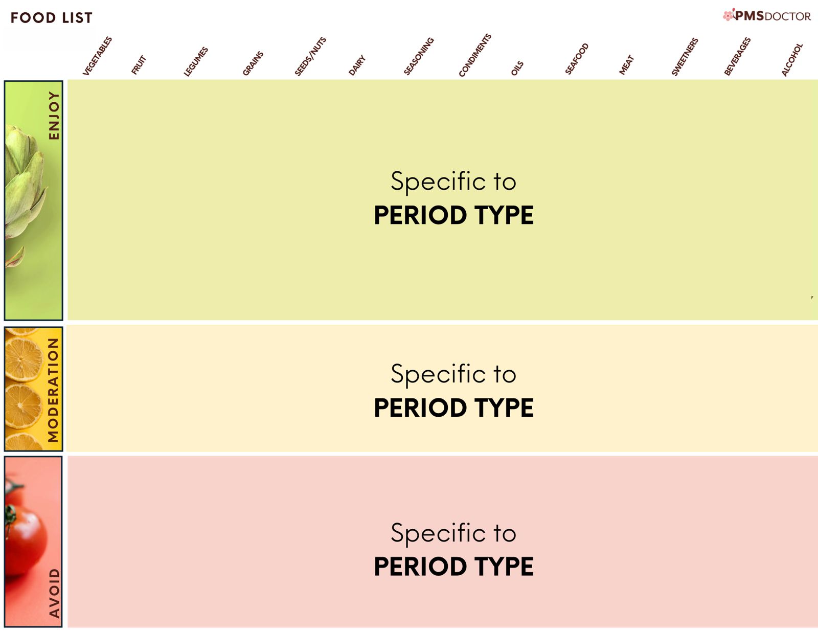 Customized PERIOD TYPE food list to understand what to eat and what foods to avoid